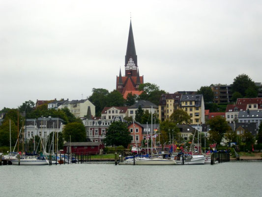 Heute haben wir einen Tagesausflug von Eckernförde nach Flensburg unternommen. Die entspannte Zugfahrt dauerte nur etwa 45 Minuten. Flensburg ist nach Kiel und Lübeck die drittgrößte Stadt in Schleswig-Holstein und liegt direkt an der dänischen Grenze – ideal für Ausflüge nach Dänemark.