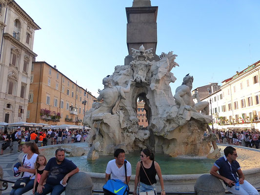 Im Zentrum der Piazza stehen drei prachtvolle Brunnen, die die Atmosphäre des Platzes maßgeblich prägen. Der berühmteste ist der Vierströmebrunnen von Gian Lorenzo Bernini, ein Meisterwerk des Barock. Ergänzt wird die Brunnenpracht durch den Mohrenbrunnen und den Neptunbrunnen. Jeder von ihnen erzählt seine eigene Geschichte und lädt zum Verweilen und Staunen ein.