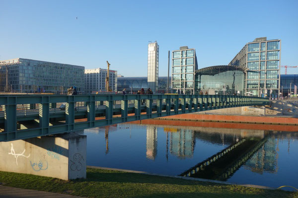 Über die Gustav-Heinemann-Fußgängerbrücke ging es weiter. Von hier aus konnte ich die umliegenden Gebäude und die vorbeifahrenden Schiffe beobachten. Mein Spaziergang endete an der U-Bahn-Station Bundestag. Wussten Sie, dass die U-Bahn-Linie 55 hier fährt? Sie ist die kürzeste Linie in Berlin und verbindet nur drei Stationen miteinander.