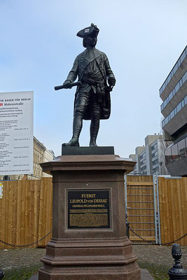 Unser Weg führte uns auch zu einigen beeindruckenden Sehenswürdigkeiten. Wir kamen am Denkmal des Fürsten Leopold von Dessau am Berliner Wilhelmplatz vorbei, einem historischen Zeugen vergangener Zeiten.