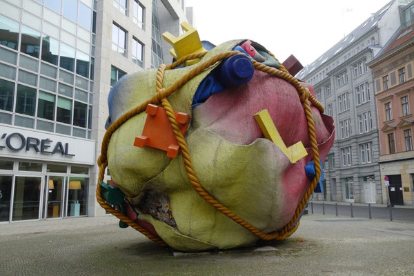 Kleine Kunstpausen gab es auch: Wir bewunderten die elf Meter hohe Skulptur "Houseball" der Bildhauer Claes Oldenburg und Coosje van Bruggen am Bethlehemkirchplatz und passierten das Museum für Kommunikation in der Leipziger Straße 16.