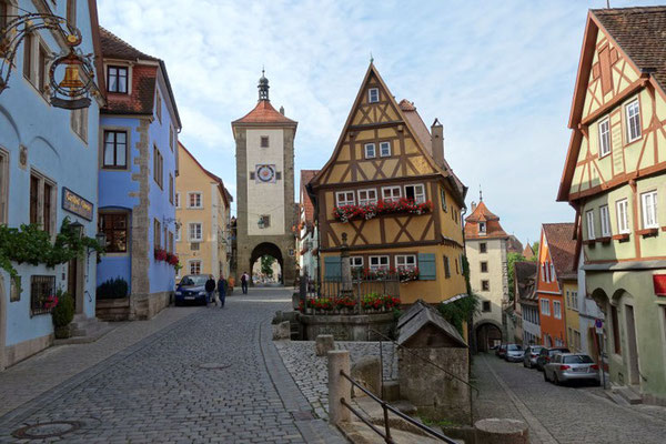 Nur wenige Schritte entfernt liegt das berühmte Plönlein, das mit seinem schmalen Fachwerkhaus und den beiden Toren, dem Sieberstor und dem Kobolzeller Tor, zum bekanntesten Motiv der Stadt gehört.
