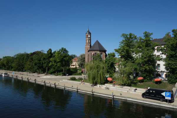 Als Alternative unternahmen wir stattdessen einen entspannten Spaziergang durch die historische Stadt. Bei sonnigem Wetter war die Havelpromenade am Salzhofufer mit der Schiffsanlegestelle ein belebter Ort, der zum Verweilen einlud.