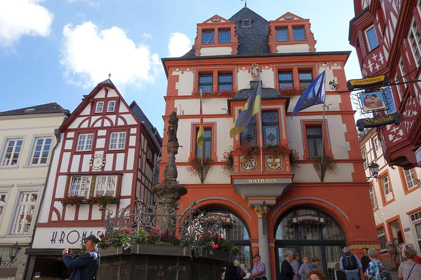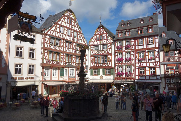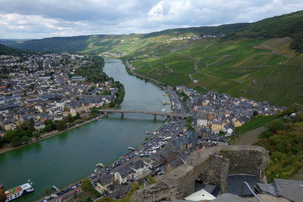 Ein Höhepunkt war die Aussichtsplattform, von der wir eine fantastische Sicht auf die Mosel mit ihren sanften Hängen und Weinbergen hatten. Besonders eindrucksvoll war die Burg Landshut, die hoch über der Stadt thront. Der historische Stadtkern mit seinen verwinkelten Gassen und Fachwerkhäusern versprühte einen einzigartigen Charme.