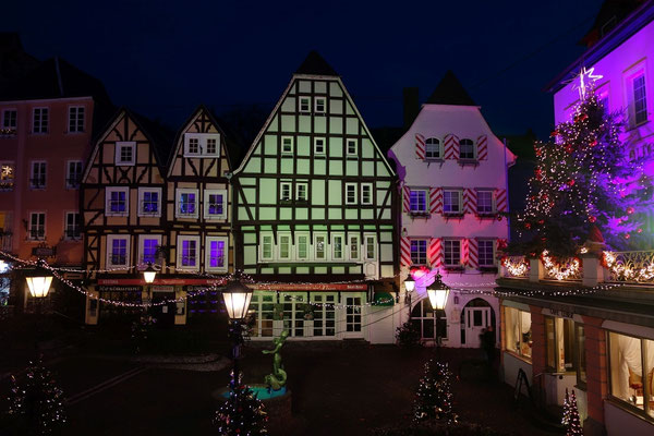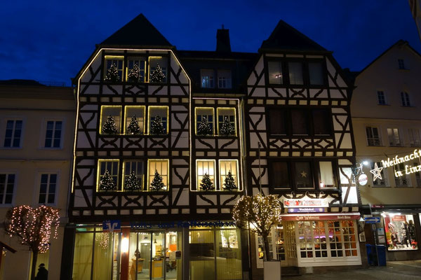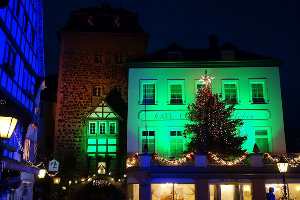 Die Altstadt von Linz am Rhein erstrahlt über den Jahreswechsel in einem ganz besonderen Licht. Die Fassaden der prächtigen Fachwerkhäuser am Burgplatz, Parkplatz und Buttermarkt sind bunt angeleuchtet und tauchen die Gassen in eine festliche, magische Atmosphäre.