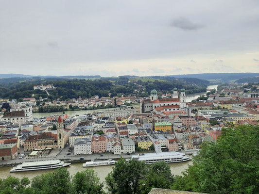 Oben angekommen, bot sich uns ein atemberaubender Panoramablick über Passau und die drei Flüsse, die hier zusammenfließen. Es ist ein Anblick, der zum Verweilen und Staunen einlädt. Die klare Luft und die wunderschöne Landschaft machen diesen Ort zu einem wahren Highlight.
