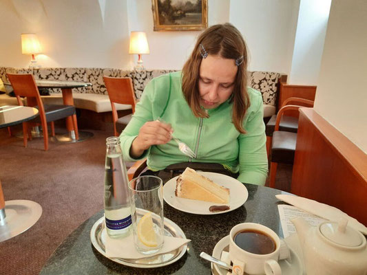 Am Nachmittag setzten wir unsere Genusstour fort und besuchten das Café Simon am Rindermarkt 12. Dort lockten uns köstliche Torten und der unwiderstehliche Duft von frisch gebackenem Kuchen. Das Café ist eine perfekte Anlaufstelle für jeden Kuchenliebhaber in Passau.