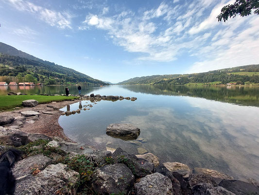 Unsere Ankunft in Immenstadt war nur der Startpunkt für ein wahres Highlight: den Großen Alpsee, den größten Natursee im Allgäu. Schon der gemütliche Spaziergang dorthin war wie ein kleiner Mini-Urlaub. Wir genossen die Ruhe der Natur, die sanften Hügel und dichten Wälder, die den See umgeben und die Kulisse für unser kleines Abenteuer bildeten.