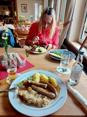 Nach einem stärkenden Mittagessen im Gasthaus zum Alpsee zog es uns direkt aufs Wasser. Bei strahlendem Sonnenschein war eine Bootstour einfach ein Muss! Bei der Wassersportschule Oberallgäu liehen wir uns ein Tretboot. Ich muss zugeben, Christina hatte die meiste Arbeit – bei einer Fläche von 2,5 Quadratkilometern ist das kein Wunder! Es war die perfekte Art, die Weite des Sees zu erleben und die Umgebung aus einer neuen Perspektive zu genießen.