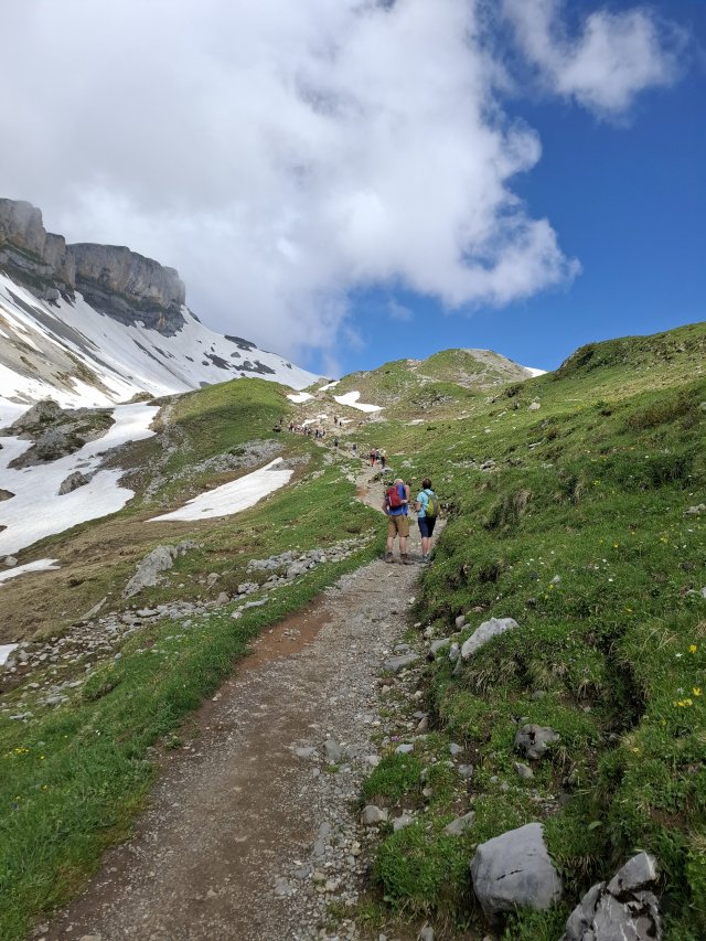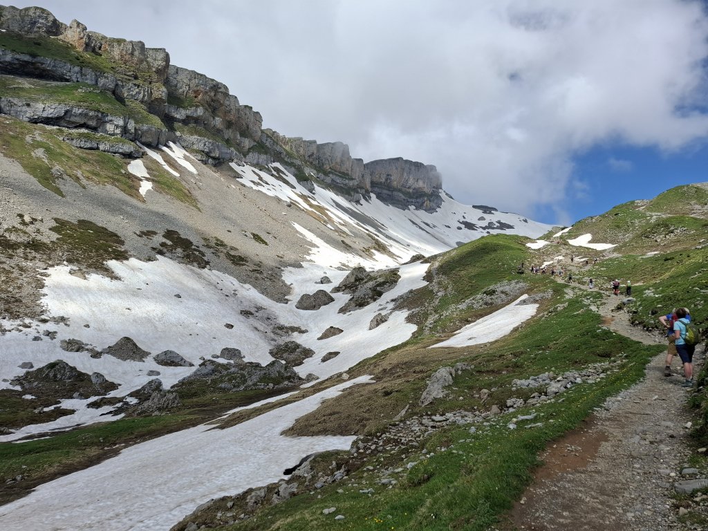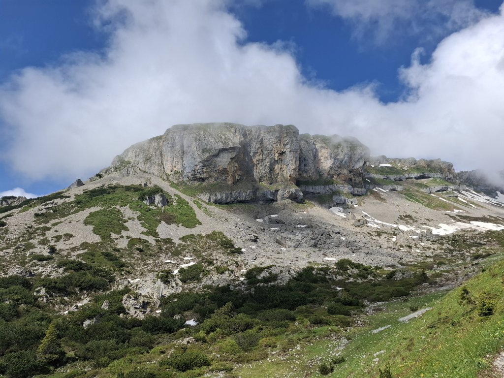 Ein besonders beeindruckender Anblick war der Aufstieg durch die Ifenmulde, wo sich die steilen, majestätischen Wände des Ifenplateaus erhoben. Der Gipfel des Hohen Ifen selbst ragt beeindruckende 2.230 Meter in den Himmel.