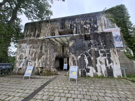 Stadt. Mit seiner schmucklosen Fassade und den eindrucksvollen, bis zu zwei Meter dicken Wänden erzählt er eine Geschichte, die von seiner Funktion als ehemaliger Marinehochbunker in Kiel